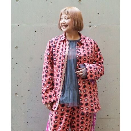 三角が並んだ、パッと目を引く総柄シャツが登場です。