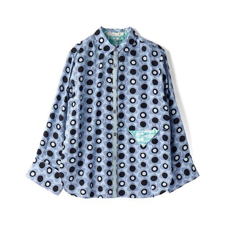 三角が並んだ、パッと目を引く総柄シャツが登場です。