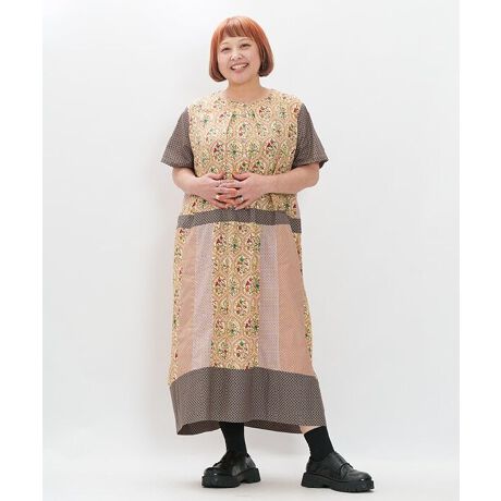4種類の柄生地の配置や分量にこだわった、1枚で主役になるワンピースです。