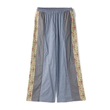 4種類の柄生地を絶妙なバランスで配置した、存在感たっぷりのワイドパンツです。