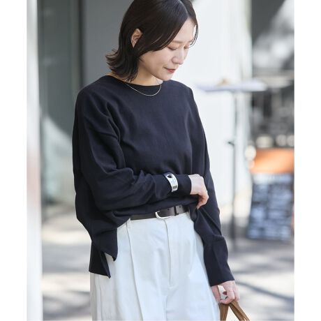 ボタンを前にして抜け感のあるカジュアルスタイルに、あるいはボタンを後ろにしてバックシャンなプルオーバーとして、