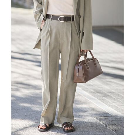 アイアスというトリアセテートのスラブ糸を使用した、しなやかでドレープ感のある上質な麻調合繊素材でおつくりしたパンツ。