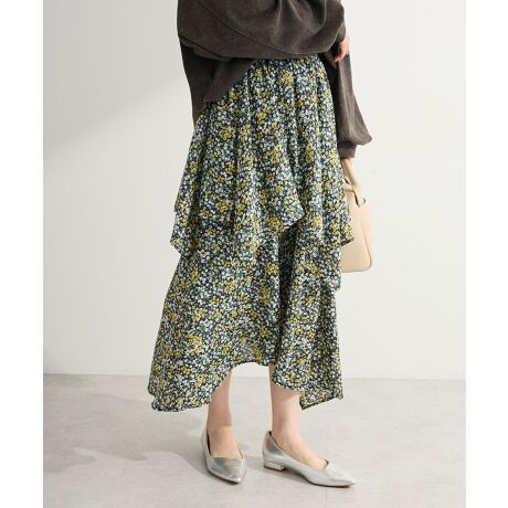 揺れるたびに、やさしい華やぎを添える花柄スカート繊細な小花柄が目を引く、上品でやさしい印象のスカートです。動くたびに表情が変わるイレギュラーヘムデザインが、自然なボリューム感と軽やかな揺れ感を演出します。ウエストはやさしくフィットし、長時間の着用でも快適に過ごせます。トップスをインしてもアウトしてもバランスが取りやすく、シンプルなコーディネートに華やかさをプラスできます。カジュアルにもきれいめにも合わせやすく、デイリーからお出かけまで幅広く活躍します。季節を問わず取り入れやすく、コーディネートの主役としても引き立て役としても使える一枚です。透け感[ややあり]