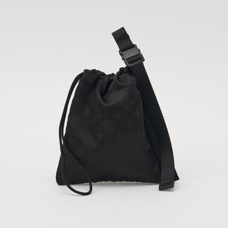 ナイロンジャガードの上品な表情に、ハリのあるテープを組み合わせた巾着ポーチ。