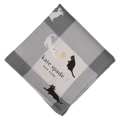 ネコをモチーフにしたプリントハンカチ。ブロックチェックにネコを全面に散りばめました。ご自分用にはもちろん、ちょっとした贈り物にもおすすめです。