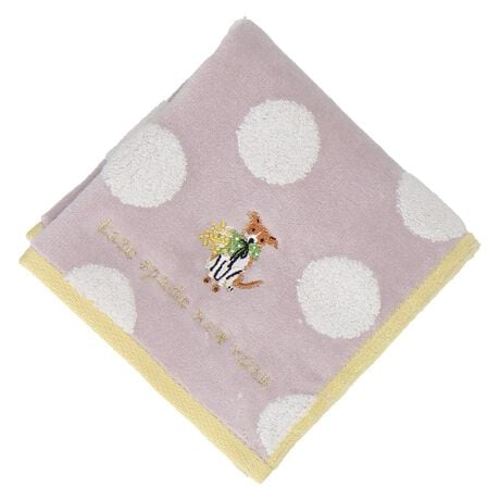 国際女性デーに向けたミモザのイエローをベースにした犬モチーフのドット柄のタオルハンカチ。ご自分用にはもちろん、ちょっとした贈り物にもおすすめです。