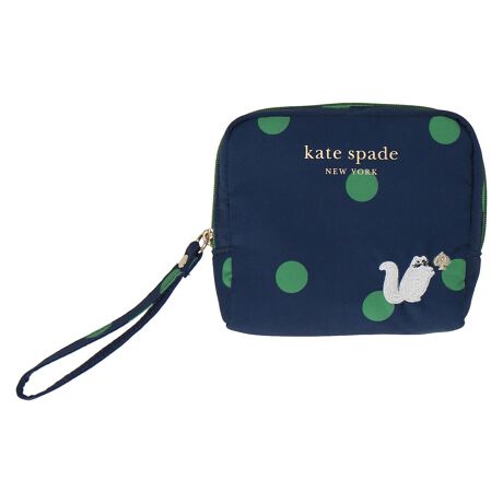 ハンカチなど小物を収納できるカジュアルなドット柄のポーチ。普段使いからトラベルまで幅広く活躍しそうです。ネコの刺しゅうがとってもキュート。清潔にお使いいただけるよう裏生地には抗菌防臭加工を施しております。ご自身はもちろん、ちょっとしたギフトととしてもおすすめです。