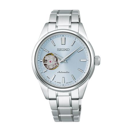 オープンハートの窓から見える機構やテンプ・回転すいなどの機械式ならではの動きを常にお楽しみいただけます。