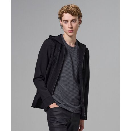 ベーシックなフロントWジップパーカー。セットインスリーブ、シームポケットでスポーティ過ぎないスッキリシルエット。