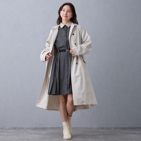 張りのあるしっかりした生地ながらもややオーバーなシルエットで、かっちりしすぎず普段のおでかけにも羽織りやすいコート。