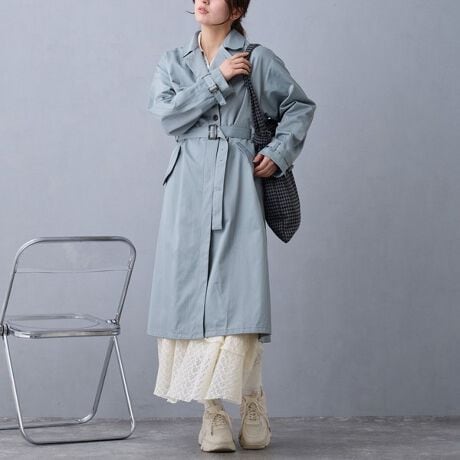 張りのあるしっかりした生地ながらもややオーバーなシルエットで、かっちりしすぎず普段のおでかけにも羽織りやすいコート。