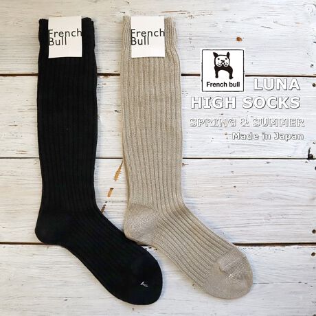 リネン糸でざっくりと編み立てた透け感のあるハイソックスです。