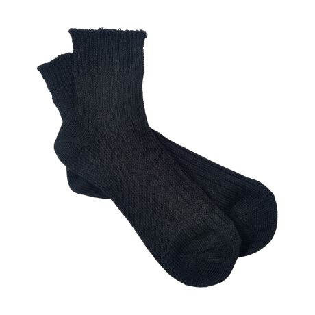 リネン糸をざっくりと編み立てた、透け感のある程よい厚みでくるぶしが隠れる短めの丈です。