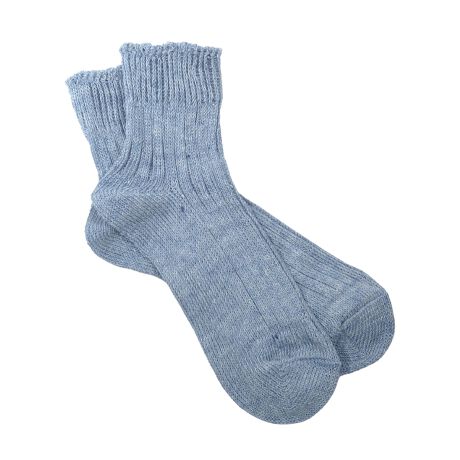 リネン糸をざっくりと編み立てた、透け感のある程よい厚みでくるぶしが隠れる短めの丈です。