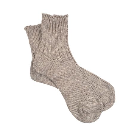 リネン糸で編み立てたシンプルなショート丈のソックスです。
