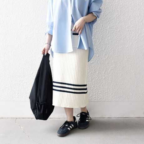 裾とポケットのバイカラーラインが目を惹く、ニットスカート。