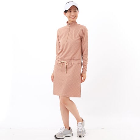 吸汗速乾・UVカット機能付きのレディースワンピース。リサイクル糸を使用し、環境にも配慮した素材です。首元はリブ仕様で快適な着心地。ハーフジップ仕様で着脱しやすく、ベルトループ付きでウエストマークしたスタイリングも可能です。