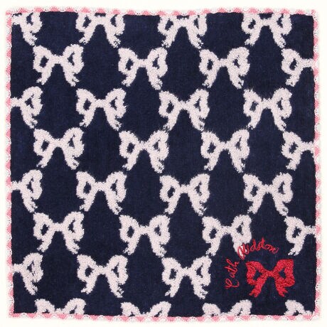 リボンモチーフをジャガードと刺繍で施した、ガーリーなタオルハンカチです。ふわふわのタオルは手触り抜群です。