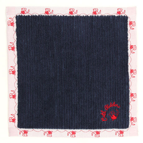 ふちをぐるりと囲む、織の可愛らしいモチーフがポイントです。ふわふわのタオルは手触り抜群です。