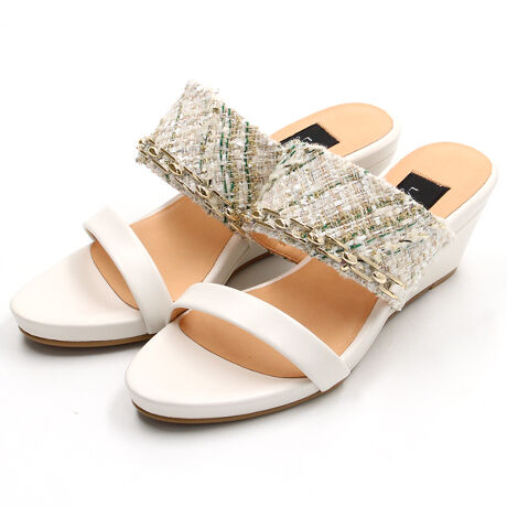 [型番:559742]チェーンモチーフウェッジミュールサンダル