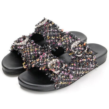 [型番:559743]ダブルバックルツイードサンダル
