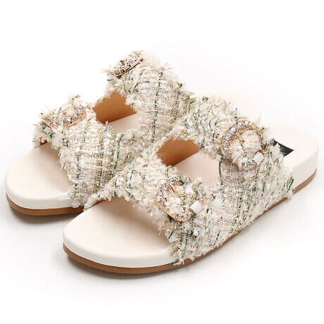 ダブルバックルツイードサンダル
