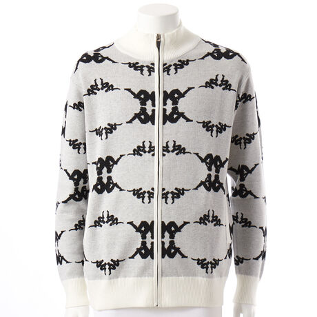 [型番:634700]総柄ロゴが存在感抜群のクールなジップアップセーターです。