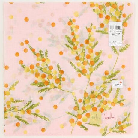 シビラ 大判 プリントハンカチ(58cm)ミモザとドット 【Sybilla】