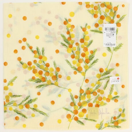 シビラ 大判 プリントハンカチ(58cm)ミモザとドット 【Sybilla】
