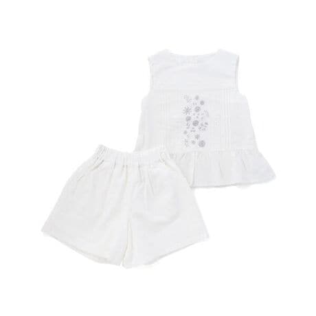 刺しゅう入り花柄ブラウス+キュロットセット(95~150cm)