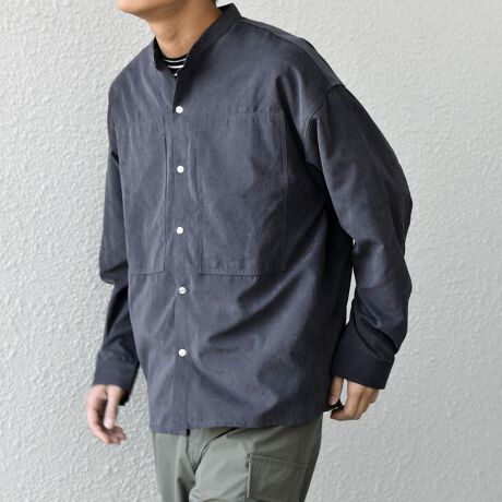 肌触りの良いピーチスキン素材を使用!羽織としても活躍するバンドカラーシャツ