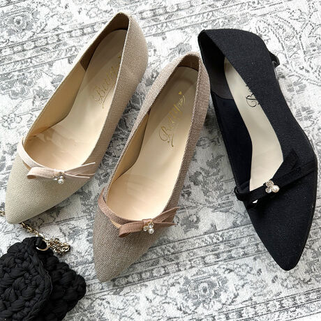【Betty Club 26SS新作商品】控えめなリボンとビジューが華奢で上品なパンプス。ローヒールで疲れにくく、歩きやすいデザインです。普段使いにはもちろん、オケージョンやちょっとオシャレをする日にもぴったりな一足です。※商品画像は、光の当たり具合やパソコンなどの使用環境により、実際の色味と異なって見える場合がございます。予めご了承ください。[型番:BC3946]