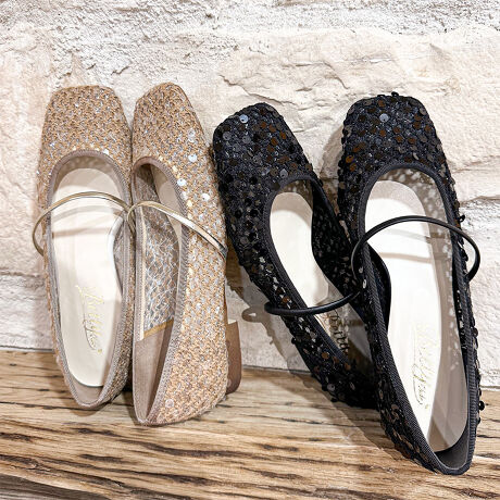 【26春夏新作】細ストラップ スパンコール メッシュ パンプス