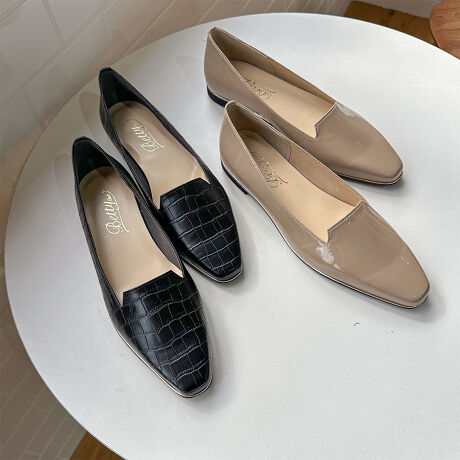 少し甲深なカッティングが甘めのマニッシュフェミニンに仕上げた