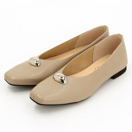 【26春夏新作】モチーフ付き スクエアトゥ フラット パンプス