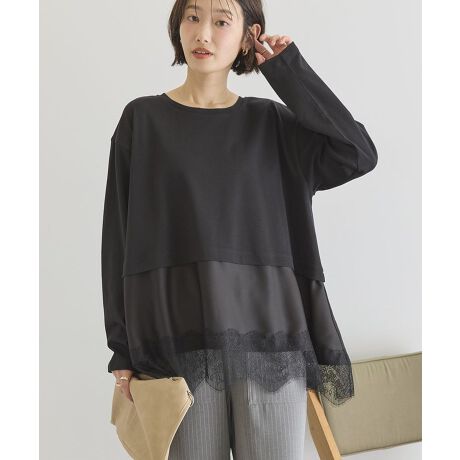 裾のレースがアクセントのプルオーバー。ヒップをさりげなくカバーする絶妙な丈感とゆったりとした身幅で、リラックス感のある着心地が魅力です。トップスとしてはもちろん、スウェットやニットのインナーに重ねれば裾のレースがちらりと覗く上品なレイヤードに。ショート丈のカーディガンやベストを重ねて裾だけレースを覗かせるスタイリングもおすすめです。※モデル着用画像は、光の当たり具合で色味が違って見える場合がございます。※お使いのモニター環境によって商品の色味が違って見える場合がございます。