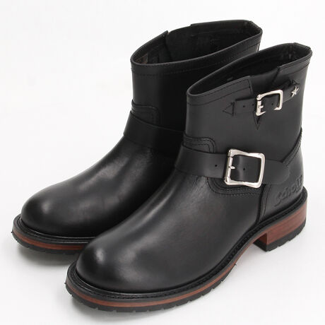 [型番:S25503]Schottフットウェアのプレミアムアイテムにあたる"One Star コレクション”。エンジニアブーツスタイルのショートモデルです。アイコンとなるスター型のスタッズを上部ベルトにデコレーションしました。アッパー素材にはオイルド&ウォータープルーフ加工を施しました。ソールは軽量でクッション性に優れてなおかつ耐久性にもすぐれるエクストラライト<XL>ソール(イタリアフィンプロジェクト社を採用しています。 *グッドイヤーウエルト製法