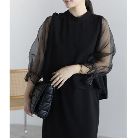 程よい透け感が女性らしさを引き立てつつ、二の腕を自然にカバーしてくれます。