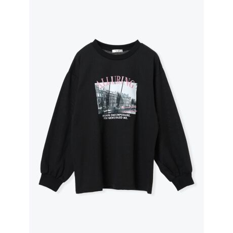 風景モチーフプリントロングスリーブTシャツ