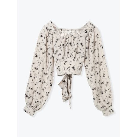 [型番:26560782690]表情のあるプリントが目を惹く、華やかなプルオーバー。バックスタイルのリボンデザインが、さりげないアクセントを添えます。ボリューム感のある袖とコンパクトな丈感で、バランス良く着こなせる一枚。足元をフラットシューズにして、抜け感のあるバランスも楽しめます。