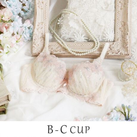 水彩画のように淡い大輪の花々が咲きほこる、優美なシリーズです。レースにはサーモカット手法をあしらい、素肌に描いたような透明感を演出。その上から切りっぱなしのチュールアップリケを重ねることで、立体感を出しながらも、軽やかで繊細なニュアンスを添えました。ふんだんにほどこされたラメ糸は光を受けるたびにきらめき、華やかでラグジュアリーな印象を与えてくれます。見る人を惹きつけるような繊細さと豪華さを兼ね備えた、特別感あふれるコレクションです。