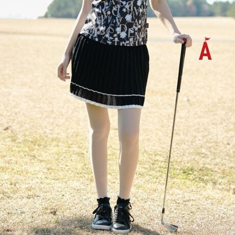 このニットプリーツスカートは、ゴルフからカジュアルな日常使いまで幅広く活躍する一着。
