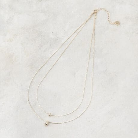 しずくモチーフを配した二連のレイヤードが、首元に上品な縦の視線を作るデザイン。