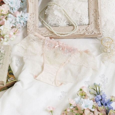 後身生地は総レースになっており、伸縮性のあるレースが肌に心地よくフィットします。足口にはゴムを使っていないので食い込まず、少しゆとりをもった履き心地です。ボトムスへもショーツラインが響きません。通気性がよく、快適にご着用いただけます。甘すぎず、大胆過ぎない特別感あふれるデザインが、ラグジュアリーな大人の雰囲気を演出します。
