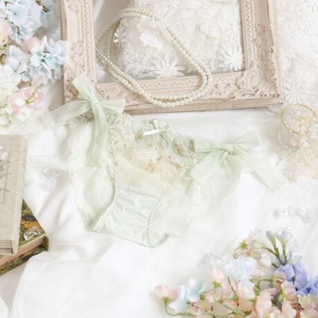 後両サイドのリボンは結び目がほどける仕様のため、ウエストサイズの調整が可能。お好みの着け心地に調整していただけます。リボンは伸縮性があるため解けにくく、ほんのりとセクシーさを感じさせてくれるアイテムです。