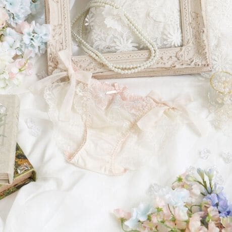 後両サイドのリボンは結び目がほどける仕様のため、ウエストサイズの調整が可能。お好みの着け心地に調整していただけます。リボンは伸縮性があるため解けにくく、ほんのりとセクシーさを感じさせてくれるアイテムです。