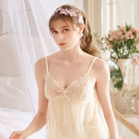 水彩画のように淡い大輪の花々が咲きほこる、優美なシリーズです。バストから身生地にかけてサーモカット手法をあしらい、素肌に描いたような透明感を演出。その下にシアーなチュールレースを重ねることで、軽やかで繊細なニュアンスを添えました。ふんだんにほどこされたラメ糸は光を受けるたびにきらめき、華やかでラグジュアリーな印象を与えてくれます。バックスタイルには結べるリボンデザインをほどこし、女性らしい可愛らしさに仕上がりました。見る人を惹きつけるような繊細さと豪華さを兼ね備えた、特別感あふれるコレクションです。