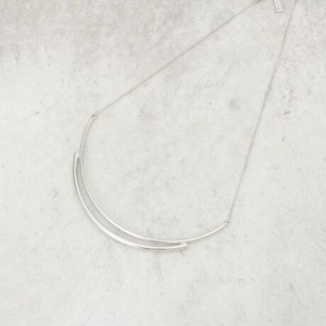 なめらかなカーブを描くメタルパーツを連ねた、洗練されたショートネックレス。