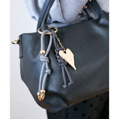 存在感のあるゴールドのハートモチーフが目を惹く、大人可愛いバッグチャーム。