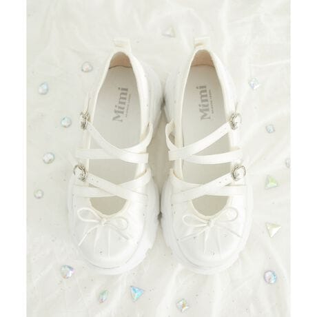 リボンディテールとクロスストラップがフェミニンな印象を引き立てつつ、